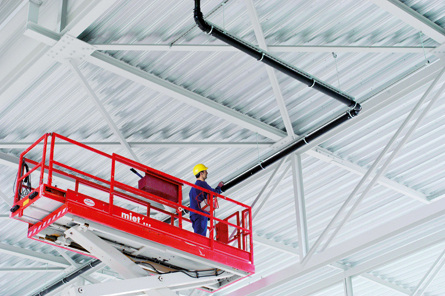 Bei der Entwässerung von Flachdächern großer Hallen wird die Installation von Sammelleitungen, die mehrere Dachabläufe entwässern, problematisch. Denn nicht nur die in Fließrichtung zwangsläufig immer größer werdenden Rohre machen dem Planer zu schaffen. Auf längeren Strecken kommt auch noch das Gefälle ins Spiel. Selbst wenn man hier mit dem, in der DIN 1986-100 [1] festgelegten Mindestgefälle von nur 0,5 cm/m arbeitet, hat die Leitung auf einer Länge von beispielsweise 50 m eine Höhendifferenz von 25 cm überbrückt. Die Leitung entfernt sich immer weiter von der Decke. Und damit „wandert“ sie in Bereiche, die der Hallenbetreiber für andere Zwecke nutzen möchte. Kurz und gut: sie liegt im Weg. Die Alternative dazu ist es, auf lange Sammelleitungen zu verzichten. Das bedeutet, dass je nach Größe des zu entwässernden Hallendaches zahlreiche Fallleitungen erforderlich sind und ein entsprechendes Grundleitungssystem unter der Halle verlegt werden muss. Bedient man sich aber der Druckentwässerung, kann man bei der Ausführungsvariante mit Sammelleitungen bleiben. Denn bei dieser Technik, die in der Praxis auch UV-System (Unterdruckentwässerung mit Vollfüllung), DED-System (Dach-Entwässerung mit Druckrohrströmung) oder HDE-System (Hochleistungs-Dach-Entwässerung) genannt wird, können die liegenden Rohrleitungen ohne Gefälle montiert werden. Darüber hinaus kommt das System mit nur einem Viertel des Leitungsquerschnittes aus, als der bei einem herkömmlichen Entwässerungssystem erforderliche. Die Anzahl der nötigen Fallleitungen wird erheblich reduziert. Ein aufwändiges Grundleitungssystem wird nicht benötigt.