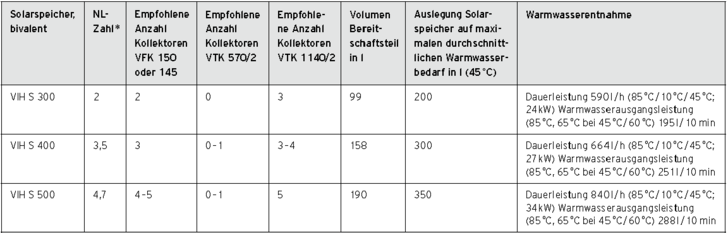 mit 240 l • 1,5 = 360 l; 240 l • 2,0 = 480 l folgt Auswahl des Solarspeichers VIH S 400, bei erhöhtem Bedarf VIH S 500.