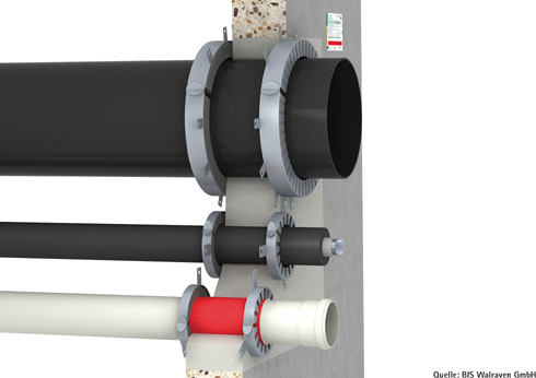 1. Die Manschette: Ihre Größe bemisst sich nach der jeweiligen Rohrdimension. Sie besteht aus zwei Halbschalen, die um das Rohr herumgelegt und an der Wand oder Decke festgebohrt werden müssen. Eine Brandschutzmanschette kann auch nachträglich bei Sanierungen montiert werden und auch bei einem schiefen Rohr kann sie, in entsprechender Größe gewählt, einen optimalen Brandschutz gewährleisten.