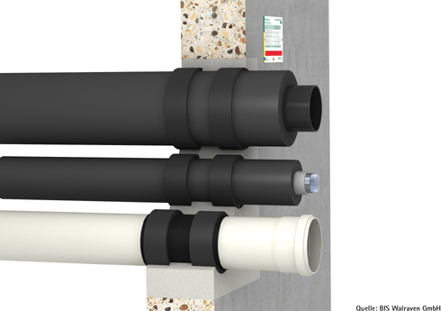 2. Die Brandschutzbandage: Diese wird als Band auf einer Rolle geliefert und kann für alle Rohrdimensionen eingesetzt werden – je größer die Dimension, desto mehr Lagen werden montiert. Allerdings ist die Bandage ausschließlich für eine In-Wand-Installation geeignet und kann nicht nachträglich angebracht werden.