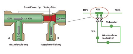 Neuerdings hat die Sanitärindustrie den alten Venturi ebenfalls wiederentdeckt. Man setzt ein Venturirohr ein um Stagnation, beispielweise in zeitweise unbenutzten Hotelzimmern, zu verhindern. Dazu schleift man eine gefährdete Installation am Steigestrang und gewährleistet so eine Durchströmung bei jedem Wasserfluss in der Steigeleitung. Diese Kunstgriffe innerhalb der Technik des Anlagenmechanikers sind allesamt vorteilhaft für die jeweilige Anwendung. Es sind in der Praxis der Heizungstechnik aber auch Nachteile bekannt, die auf den Venturi-Effekt zurückzuführen sind: