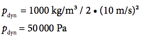 pdyn = 1000 kg/m3 / 2 • (20 m/s)2 pdyn = 200 000 Pa