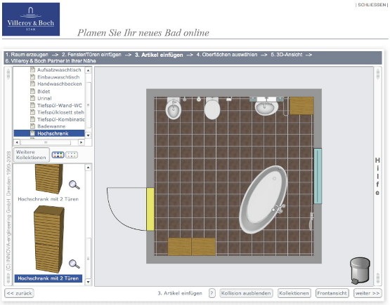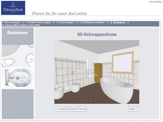 Mit dem neuen Badplaner von Villeroy & Boch ist es dem beratenden Monteur oder Meister möglich, ein neues Badezimmer ganz einfach Online am PC zu entwerfen. Das Programm bietet neue Anwendungsmöglichkeiten im Bad- & Wellness-Bereich und ist zudem noch schnell und einfach zu bedienen.
