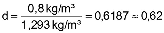 Ein Brenngas hat eine Dichte von 0,8 kg/m³. Wie ist das Dichteverhältnis zu Luft?