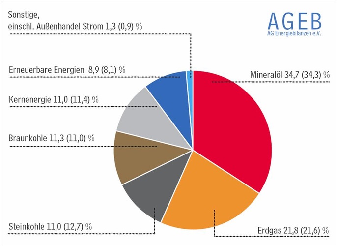 Energieverbrauch in Deutschland lag mit 34,7 Prozent leicht höher als im Vorjahr.