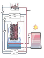 Sobald die Temperatur des Verdampfers/Kondensators unter Umgebungstemperatur gefallen ist, wird Energie aus den Solarkollektoren hinzugefügt, und das Wasser im unteren Teil des Moduls verdampft. Da im Zeolith-Modul Vakuum herrscht, erfolgt die Verdampfung bereits bei niedrigen Temperaturen: Schon geringste Solarerträge ab 3°C reichen dafür aus (und diese Kollektortemperatur kann durchaus schon bei Außentemperaturen deutlich unterhalb von 0°C erreicht werden). Der Dampf strömt in den oberen Teil des Moduls und wird dort vom Zeolith adsorbiert. Die dabei frei werdende – erhebliche – Adsorptionswärmemenge wird ebenfalls genutzt. Wenn das Wasser vollständig verdampft ist, beginnt der Prozess von vorn.