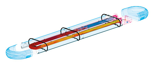Wenn Dunkelstrahler an der Decke hängend montiert werden, müssen sie mindestens 3,5 Meter hoch hängen. Erfolgt eine Montage des Strahlers bei Schrägaufhängung unter 45°, ist eine Höhe von 3 Metern ausreichend. In der Regel werden Dunkelstrahler an der Decke oder deren Unterkonstruktion aufgehängt. Ist das nicht möglich, kommt auch eine Montage an der Wand in Frage, und die Dunkelstrahler bestrahlen den Raum in einem Winkel von 30 bis 60 Grad. Die Regelungstechnik findet in einem Schaltschrank Platz. Sie schaltet die Dunkelstrahler in Abhängigkeit von Raumtemperatur Nutzungszeit und Nutzungsbereich des Gebäudes ein. Bei Bedarf lassen sich auch einzelne Strahler aktivieren. Wie etwa auch im Hangar des Adolf-Würth-Airports in Schwäbisch Hall. Hier senken die Strahler dort ihre Heizleistung ab, wo ein Tor für die Ausführung von Rangierarbeiten geöffnet wird.