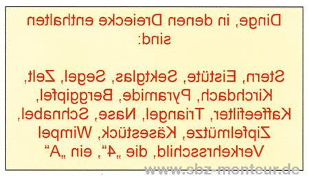 Notieren Sie möglichst viele und verschiedene Dinge, in denen ein Dreieck enthalten ist. Größe, Anzahl und Lage spielen keine Rolle.