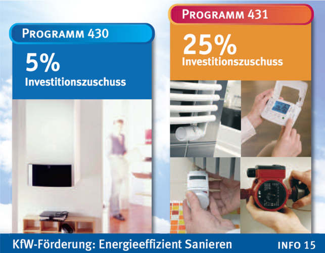 Die aktualisierte VdZ-Info 12 enthält die aktuellen, gut aufbereiteten Informationen über die Basis- und Bonusförderung im Marktanreizprogramm 2010 des Bundesamts für Wirtschaft und Ausfuhrkontrolle (BAFA), das Heizungsmodernisierungsmaßnahmen in Kombination mit Erneuerbaren Energien fördert. In der VdZ-Info 15 werden die KfW-Programme 430 Erneuerung der Heizung mit Hocheffizienzpumpe (5% Investitionszuschuss) und 431 Optimierung der Wärmeverteilung in bestehenden Heizungsanlagen (25% Investitionszuschuss) verständlich vorgestellt. Die neue Broschüre liefert u. a. Antworten auf die Fragen was gefördert wird, wie hoch die Zuschüsse sind, wer die Anträge stellen kann und wo es weitere Informationen gibt. Um die Barzuschüsse der KfW zu erhalten, müssen künftig der Heizungs-Check und der Hydraulische Abgleich nachgewiesen werden, die in der VdZ-Info 15 ebenso erläutert werden.