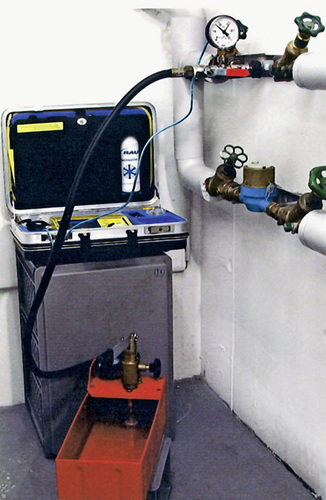 Auch die Überlegung, die Leitung nach der Dichtheitsprüfung zu entleeren, kann keine Lösung des Problems sein. Oft sind die Leitungen gar nicht so angeordnet, dass sie tatsächlich vollständig leer laufen können. Und selbst wenn das der Fall wäre, bliebe die Rohrwand nass - der „Lebensraum Rohr“ wäre folglich nicht mehr aufzuhalten. Daraus folgt, dass eine Dichtheitsprüfung mit filtriertem Trinkwasser - wie sie nach DIN 1988-2 ausschließlich verlangt wird - nur dann vertretbar ist, wenn die Installation sofort nach Ausführung der Kontrolle benutzt wird. Da eine solche Situation in der Praxis aber nur selten vorkommt, muss man diese Art von Dichtheitsprüfung heute als nicht mehr zeitgemäß abhaken. An Stelle der antiken Prüfmethoden der DIN 1988 tritt hier das ZVSHK-Merkblatt „Dichtheitsprüfungen von Trinkwasser-Installationen mit Druckluft, Inertgas oder Wasser“. Während die Wasserprüfung hier nur noch für den genannten Ausnahmefall beschrieben wird, tritt die Luftprüfung in den Vordergrund. Allerdings kann beim Einsatz eines Gases als Prüfmedium nicht mit den hohen Drücken gearbeitet werden, die bei einer Prüfung mit Trinkwasser als Medium üblich sind.