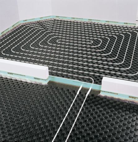 Holzbalkendecke verlegt werden. Die geringe statische Belastung (ca. 25 kg / m²), die niedrige Höhe (ca. 50 mm inklusive Trockenestrichplatte) und die schnelle Regelfähigkeit aufgrund der massearmen Lastverteilschicht zeichnen das System aus.