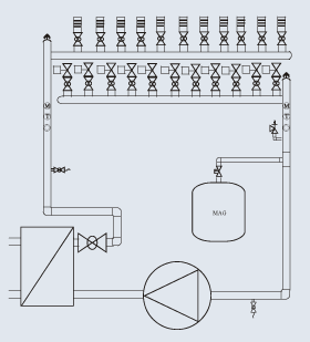 Damit der Sauerstoff in der Heizungsanlage nicht gleich den neuen Heizkessel zum Rosten bringt wird ein Plattenwärmetauscher zur SYSTEMTRENNUNG eingesetzt. Durch diesen Wärmetauscher wird unsere Heizungsanlage bzw. unser Heizkreis in zwei Kreise aufgeteilt. Hier wird der Primärkreislauf der Heizung von dem Sekundärkreislauf der Fußbodenheizung komplett getrennt. Auf der Flächenheizungsseite eintretender Sauerstoff findet keine Korrosionspartner mehr und kann somit keinen Schaden mehr anrichten. Das Wasser im Flächenheizungskreis ist auch nach Jahren noch ohne Schlamm. Bei richtiger Installation kann damit eine Verschlammung auf der Fußbodenseite prinzipiell ausgeschlossen werden.