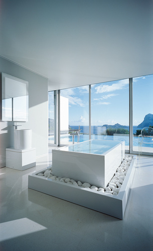 In einer schönen Umgebung nimmt man sich umso lieber Zeit zum Abschalten und lässt es sich auch im heimischen Bad so richtig gut gehen: Mit einer Badausstattung, die zum Erfrischen, Pflegen, Erholen, Schwelgen, Therapieren, Plätschern und Genießen einlädt. Das private Spa vereint Lebensstil, Design und Architektur zu einem stimmigen Ganzen. Badewannen zeigen sich in XXL-Größe und laden zum Badevergnügen zu zweit ein. Besonders freistehende Wannen dokumentieren Großzügigkeit im Bad. Entsprechend setzt sich ihr Design in Szene, beispielsweise bei der luxuriösen Starck X Badewanne. In ihrem umlaufenden Wassergraben lassen sich via Touch-Fernsteuerung individuelle Farb-Spiele bestimmen. Statt eines Überlaufs fangen echte weiße Steine das überfließende Wasser im außen liegenden Graben ein. Wasserbeständige, geradlinige Holzeinsätze - auf den Grabenrand aufgelegt - bringen eine wohnliche Optik ins Wasserparadies. Die Kombination von Prävention, Verwöhnen und Ambiente bietet ein ganzheitliches Erlebnis, das alle Sinne anspricht.