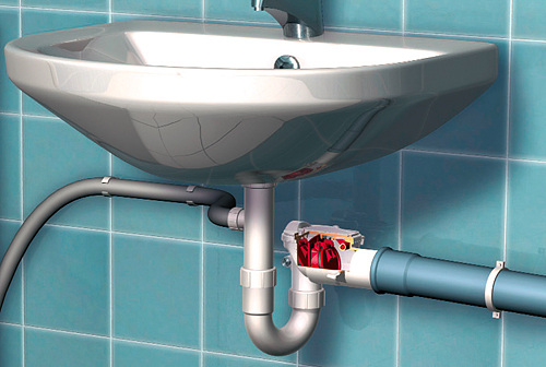 Handelt es sich um einzelne Ablaufstellen unterhalb der Rückstauebene, wie z. B. ein Ausgussbecken oder ein Waschtisch, kann die Rückstausicherung direkt am Geruchverschluss angeordnet sein. Bei einer Gruppe von Sanitärobjekten (z. B. die in einem „Kellerbadezimmer“) müssen sich diese in eine Nebengrundleitung entwässern, die über einen Rückstauverschluss gesichert ist. Mit dieser Anordnung des Rückstaudoppelverschlusses stehen die Chancen gut, dass es auch bei einem Wolkenbruch kein böses Erwachen gibt.