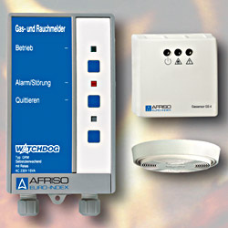 Der neue WATCHDOG Gas- und Rauchmelder GRM von AFRISO überwacht die Raumluft in geschlossenen Gebäuden auf das Aufkommen brennbarer Gase und/oder Rauch. Bei Überschreitung einer klar definierten Gas- oder Rauchkonzentration erfolgt am Signalteil sofortige optische und akustische Alarmgabe. Der Betriebs- oder Alarmzustand wird auch stets an den Sensoren über LEDs angezeigt. Der WATCHDOG GRM lässt sich erst nach Unterschreitung der kritischen Alarmschwelle wieder in den Normalzustand (kein Alarm, keine Störung) zurücksetzen, wodurch dem Anwender ein hohes Maß an Sicherheit entsteht. Das System bietet ein Höchstmaß an Betriebssicherheit und Zuverlässigkeit, denn es überwacht den Zustand der Gas-/Rauchwarnanlage permanent und meldet Störungen wie Sensordefekte, Kurzschlüsse oder Leitungsbrüche (zwischen Signalteil und Sensoren) von selbst. Die Gas- und Rauchsensoren können bis zu einer Entfernung von 150 m vom Signalteil entfernt montiert werden.