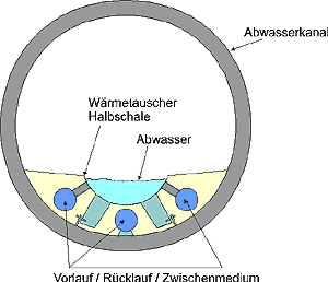 Als Wärmetauschersysteme stehen dabei zwei grundsätzliche Möglichkeiten zur Verfügung. Zum einen sind dies im Kanalrohr verlegte Rinnenwärmetauscher und zum anderen externe Doppelrohr- oder Plattenwärmetauscher, die im Bypass zum Kanal angeordnet sind.