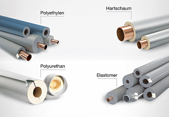 Polyurethan-Dämmstoffe sollten allerdings nur auf warmgehenden Leitungen eingesetzt werden. Sie werden wie z. B. Armalok als ummantelte Rohrschalen, Bogen und Ventilkappen geliefert und sind insbesondere für die nachträgliche Dämmung im Sichtbereich geeignet.