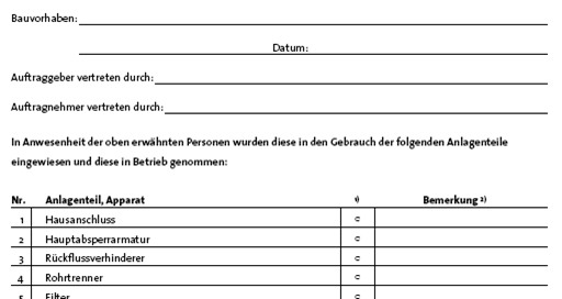 Als PDF-Datei zum Download finden sie ein Inbetriebnahme- und Prüfprotokoll für die Trinkwasserinstallation.