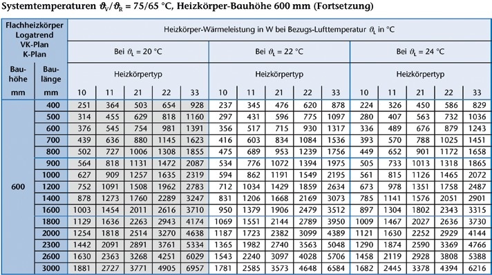 Grundlage zur Festlegung der Leistung eines Heizkörpers ist die Norm-Heizlast nach DIN EN 12831. Wenn die Norm-Heizlast beispielsweise 1000 Watt beträgt dann ist das Ziel definiert und erkannt. Klar, höre ich jetzt einige sagen, ausgelegt wird nach Katalog des Herstellers. Und wenn da als Leistung 1000 Watt angegeben werden, dann wird der Heizkörper das auch bringen. Richtig, nur unter welchen Bedingungen? Getestet werden die verfügbaren Heizkörper bei magischen 75/65/20. Also 75 °C Vorlauftemperatur, 65 °C Rücklauftemperatur, und einer Raumtemperatur von 20 °C. Nur welche Leistung ergibt sich bei anderen Temperaturen?