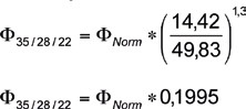 Bewertung des Ergebnisses: Ein Heizkörper der anstatt bei Normbedingungen 75/65/20 für die Bedingungen 35/28/22 vorgesehen wird, gibt nur noch das 0,109-fache seiner Leistung ab, das entspricht 10,9 %. Will man also aus der Normliste der Heizkörper einen Heizkörper mit 300 Watt Heizleistung herauspicken, so sollte die Leistung