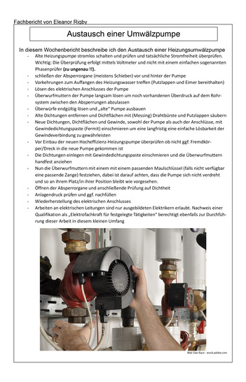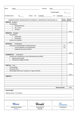 Fachbericht Hydraulische Weiche, Wochenbericht