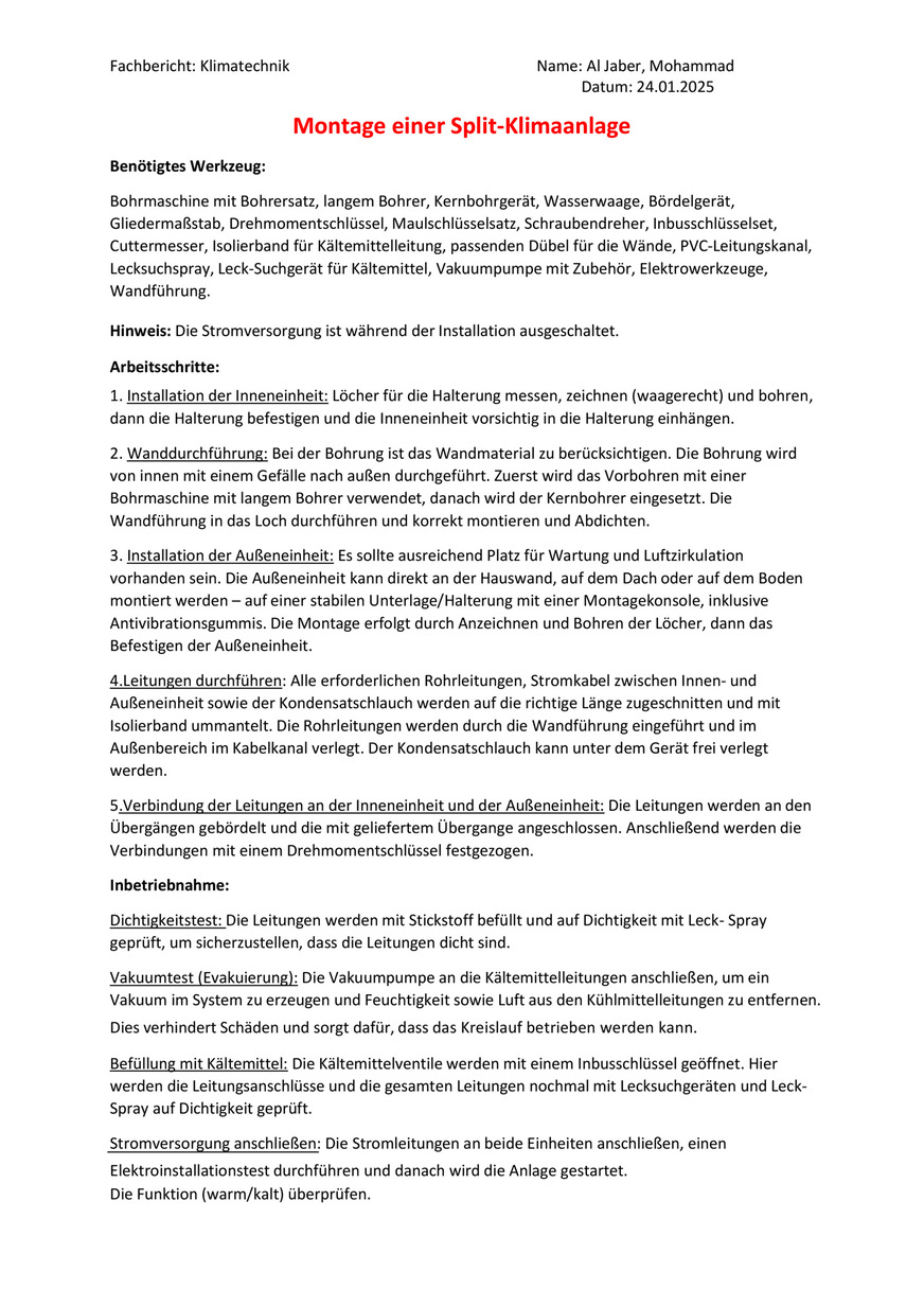 Bericht Heizung