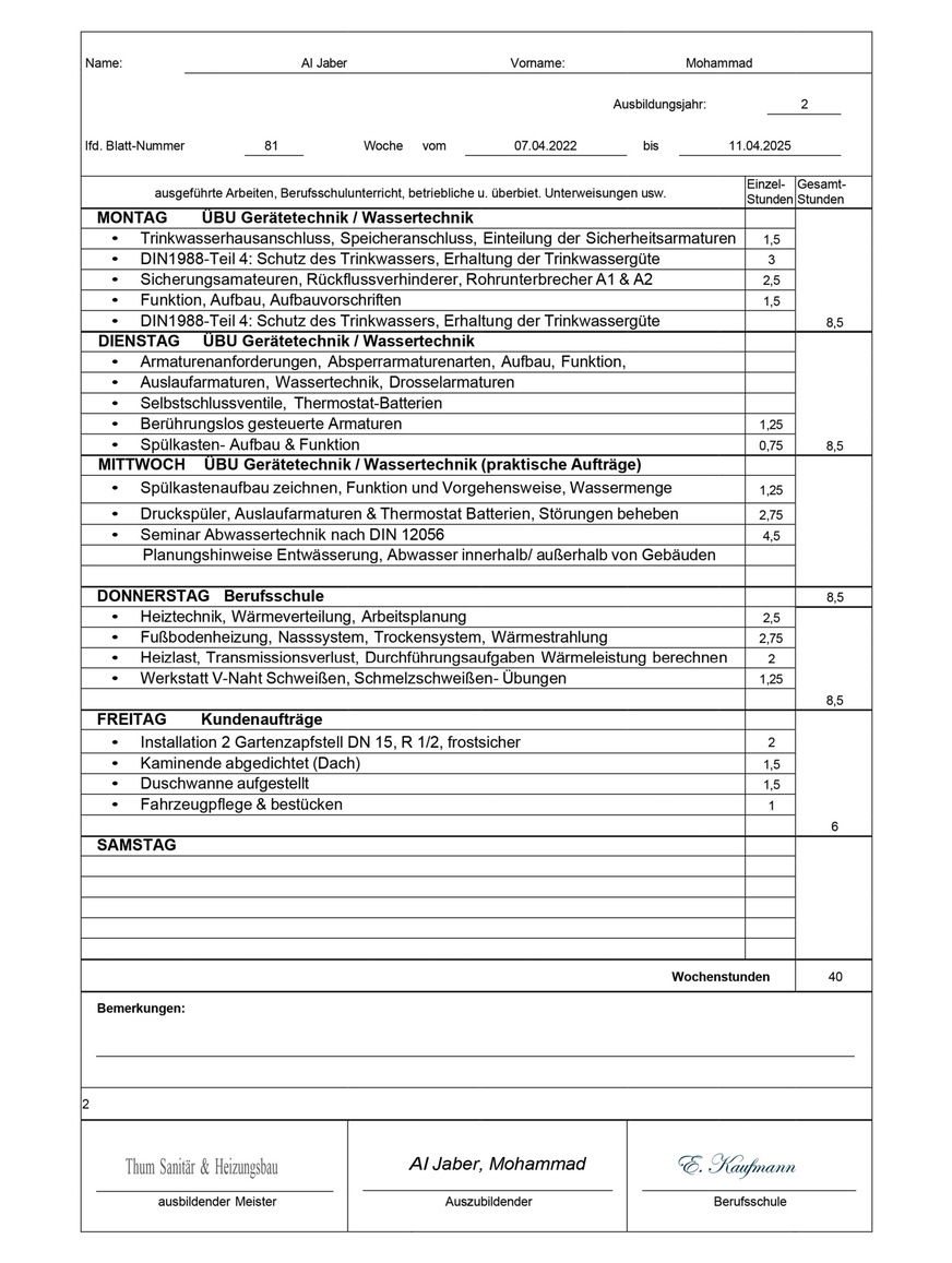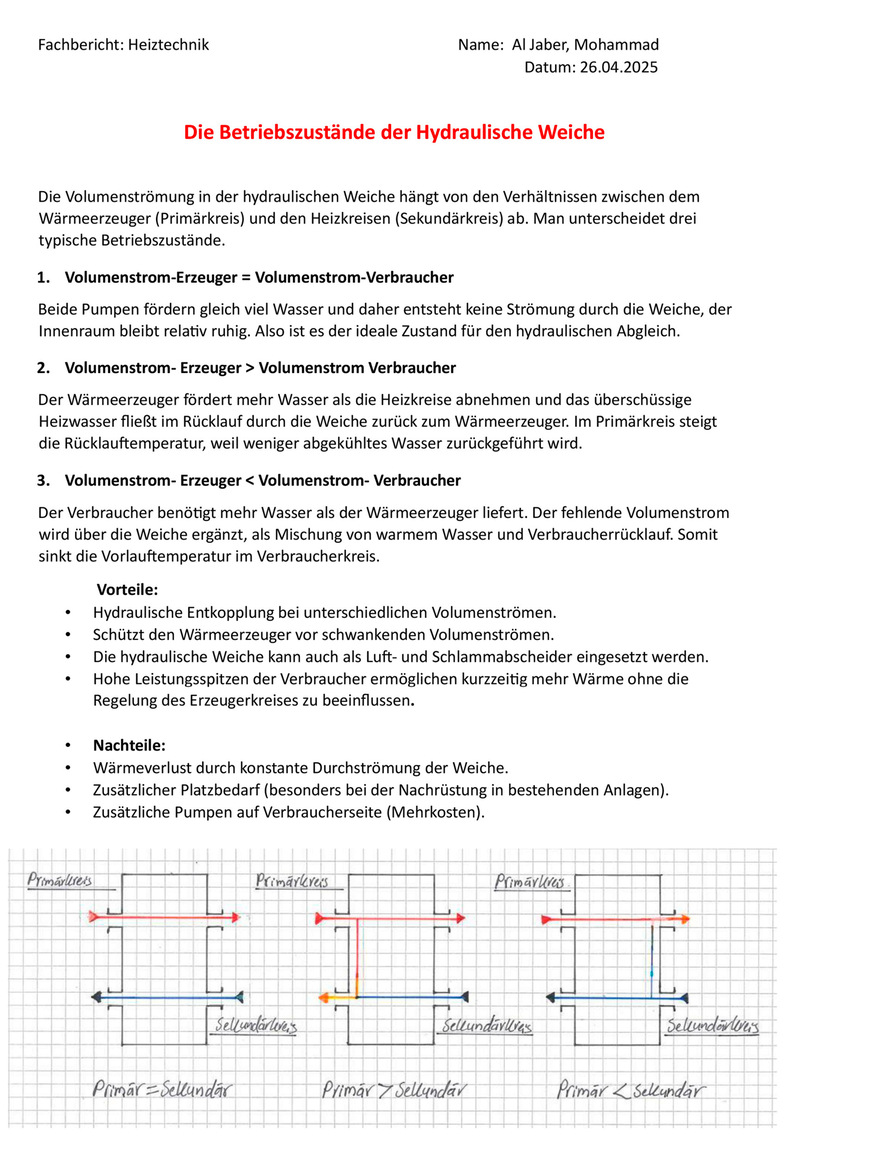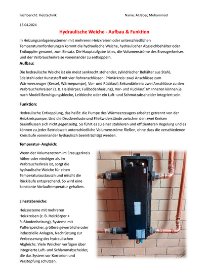 Fachbericht Hydraulische Weiche, Wochenbericht