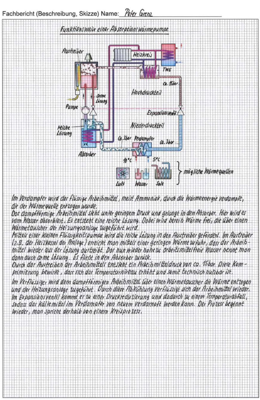 Um die Funktion einer Absorptionskältemaschine zu verstehen, sollte der Vorgang der Absorption bekannt sein. Absorption meint umgangssprachlich das Aufsaugen eines Stoffes. In diesem speziellen Kälteprozess sind zwei Stoffe, die sehr leicht eine sehr innige Verbindung eingehen, in einem Behälter zusammen untergebracht. Einer der beiden Stoffe, nämlich Lithiumbromid, ist gierig danach, den anderen Stoff, nämlich Wasser, komplett aufzunehmen, zu absorbieren. Das Wasser für diese Absorption wird flüssig in diesen Behälter eingesprüht. Es verdampft, wie der eben erwähnte Alkohol, auf der Oberfläche eines Wärmetauschers. Der Kühleffekt auf diesem Wärmetauscher ergibt sich, ebenso wie beim Verdampfen des Alkohols auf der Haut, durch die Umsetzung von Wärmeenergie in Bewegungsenergie. Diesem Wärmetauscher wird also Wärmeenergie entzogen. Das nun dampfförmige Wasser kann in dieser Phase von dem gierigen Lithiumbromid aufgenommen, also absorbiert werden.