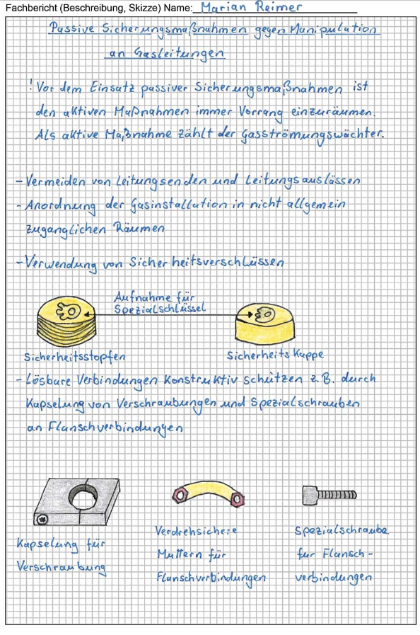 Gasanlagen müssen vor Manipulation geschützt werden. Die meisten Unfälle werden durch Manipulation und nicht durch Alterungserscheinungen an einer Gasleitungsanlage verursacht. Ganz weit oben stehen suizidale Manipulationen. Also Manipulationen zum Zweck der Selbsttötung. Das dabei auch noch andere Menschen verletzt oder gar getötet werden, wird meistens billigend in Kauf genommen. Die TRGI hat dazu sogenannte aktive Maßnahmen (Gasströmungswächter) verpflichtend gemacht. Sogenannte passive Maßnahmen sollen verhindern das Stopfen ohne Spezialwerkzeug schnell entfernt werden können. Wird die HAL (Haus-Anschluss-Leitung) mit > 100 mbar betrieben, müssen lösbare Verbindungen in allgemein zugänglichen Räumen von Drei- oder Mehrfamilienhäusern vor dem ersten GS im Haus neben der aktiven Sicherung durch den GS auch passiv gesichert werden.