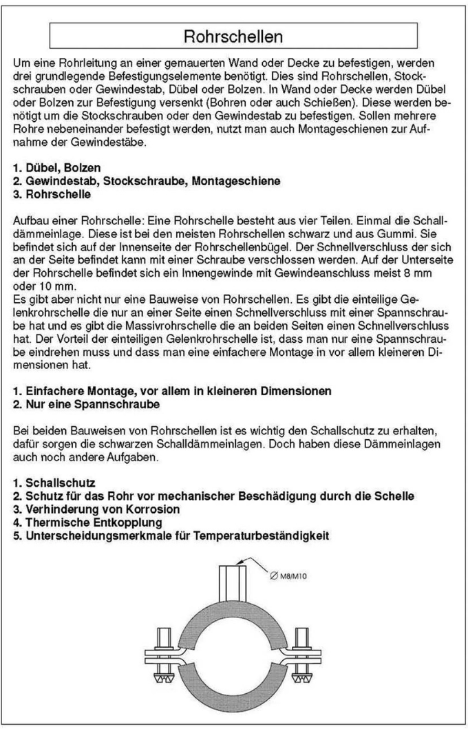 Was nützt einen die „beste“ sprich qualitativ die beste Rohrschelle, wenn die Rohrschelle nicht korrekt verankert worden ist. Denn sollte jemanden das Rohr auf dem Kopf fallen, oder der Waschtisch auf die Füße, dann kann es schon mal teuer werden. Auf dem Dübel kommt es an, der stellt quasi den Kontakt, nämlich die Verbindung zum Baukörper her. Ich kann mir schon denken, was jetzt kommt, nimmst halt die grauen Dübel aus Kunststoff die gehen doch immer. Nicht so falsch, allerdings auch nicht ganz richtig. Hoffentlich habt ihr euch den Fachbeitrag vom Mittwoch durchgelesen. Dort findet ihr eine kleine Dübelkunde.