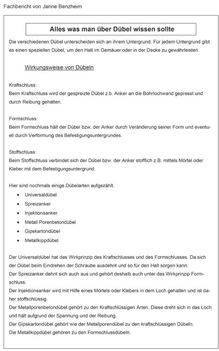 Mit dem Link kommt ihr an weitere Informationen zum Thema Dübel.