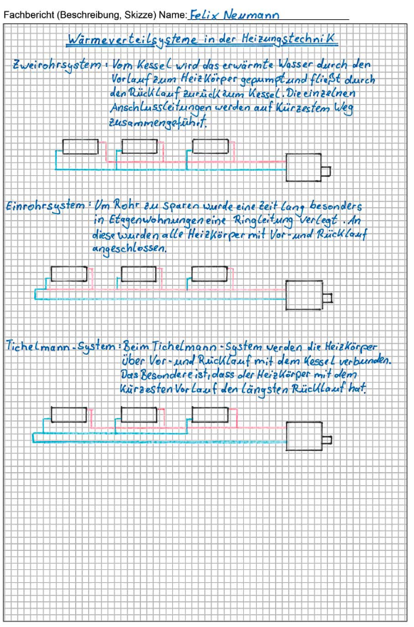 Die „Tichelmann Heizung“ – Richtiger: Die hydraulische Anbindung nach Tichelmann. Ein geniales aber auch kostenintensives System. Genial deshalb weil nahezu identische Druckverluste im Rohrnetz herrschen. Im Gegensatz zum Abgleich durch Ventile wird im Tichelmann-System keine Pumpenleistung durch unnötige Widerstände verbraucht. Es stellt das einzige System dar, in dem ein hydraulisch in sich abgeglichenes System mit dem geringst möglichen Widerstand geschaffen werden kann. Diesem Vorteil stehen einige Nachteile gegenüber: höherer Materialverbrauch, da die Rohrführung nicht auf dem kürzest möglichen Weg erfolgt, bei Rohrreduzierungen ist eine aufwändige Wärmedämmung erforderlich, da ungleiche Durchmesser vorliegen, und die nebeneinanderherlaufenden Vor- und Rücklaufleitungen haben unterschiedliches Gefälle. Somit ist die Rohrverlegung nach Tichelmann teuer hinsichtlich des Materialverbrauchs und der Rohrmontage, so dass sie in Privathaushalten eher selten zur Anwendung kommt oder kam.