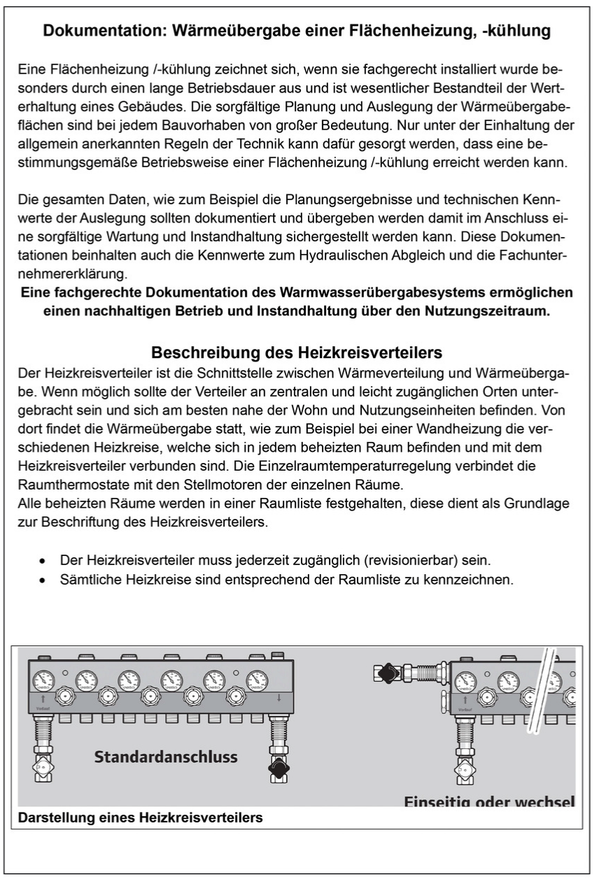 Die Flächenheizung ist von ihrer Funktionsweise das optimale System um mit niedrigen Systemtemperaturen Räume und Gebäude mit Wärmeenergie zu versorgen. Dabei wird im Neubau die max. VL-Temperatur nicht höher wie 35°C sein. Im Bestandgebäude (Altbau) werden in der Regel um 10K höhere Temperaturen benötigt. Nutzt den Link um noch mehr über die Flächenheizung zu erfahren.