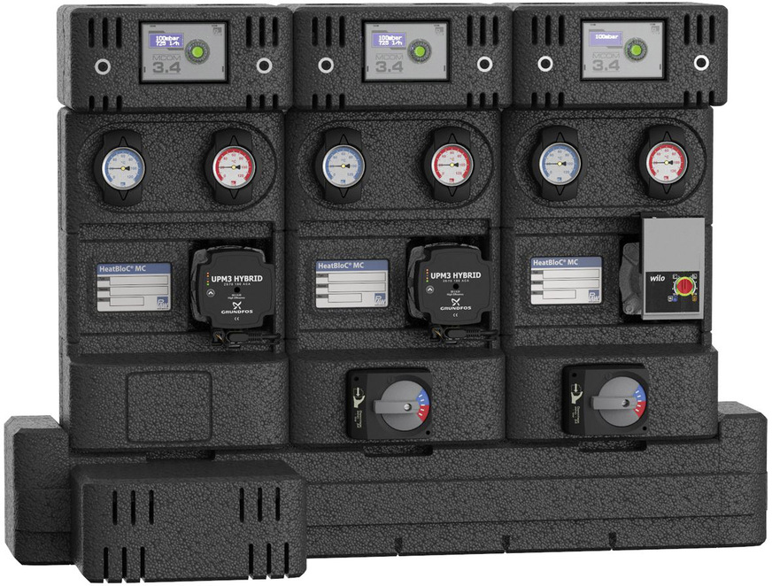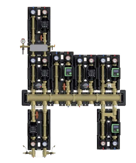 Bei den HeatBloCs handelt es sich um komplett vormontierte Armaturengruppen in den Nennweiten DN 20 bis DN 50. Geboten wird für jeden Anwendungsfall die passende Lösung: von direkten Heizkreisen über gemischte mit 3- oder 4-Wege-Mischer oder thermischem Regelventil über Bypassmischer bzw. Dreitemperatur-Mischer. Zudem sind Sonderlösungen wie Kesselanbindungen und Rücklauf-Hochhaltungen möglich. Das Besondere: Alle Pumpengruppen können auf einen PAW Modulverteiler aufgesetzt werden und bieten so ein Maximum an Flexibilität. Es entsteht ein vollständig isolierter Heizkreisverteiler aus Messing, der optimal auf die Gegebenheiten angepasst ist.