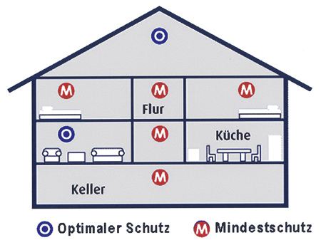In Hessen, Schleswig-Holstein, Rheinland-Pfalz und im Saarland ist die Installation von Rauchmeldern bereits vorgeschrieben. Die Gesetzgebung fußt dabei auf der Norm DIN 14676 [2]. Im Prinzip geht man von drei Schutzstufen aus, die erfüllt werden können: der Mindestschutz, der optimale Schutz und der Sonderschutz.