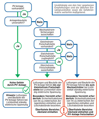 Der Umgang mit PV-Anlagen im Brandfall ist Sache der Profis. Aus diesem Grunde werden hier auch keine ausführlichen Empfehlungen zur Sache dargelegt. Nach dem Lesen dieses Berichts ist man ausdrücklich nicht eine ausgewiesene Hilfskraft für das Löschen von Gebäuden in unmittelbarer Nähe von PV-Anlagen. Nur ist es wichtig zur eigenen Sicherheit diese Phänomene zu kennen und sich entsprechend im eigenen Arbeitsumfeld zu verhalten. Denn auch auf den Anlagenmechaniker kommt der unmittelbare Kontakt mit diesen flach gewalzten Kraftwerken immer häufiger zu. Und zur Beruhigung derer, die PV-Module auf dem Dach haben sei noch erwähnt: Die Feuerwehr löscht natürlich trotzdem, aber eben noch ein bisschen vorsichtiger.