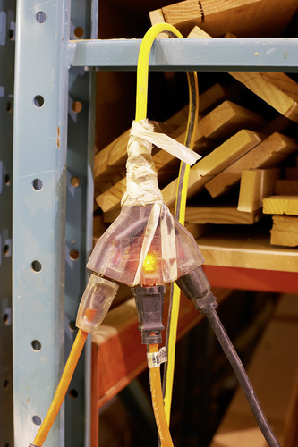 Sicher nur mit Gummi - Unter Spannung stehende Teile abdecken