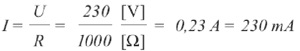 Der erste Punkt beschreibt die Situation, die am häufigsten von allen eintritt. Stellen wir uns folgende Situation vor: Eine Wandleuchte soll montiert werden. Die drei Adern des Leuchtenanschlusses kommen mit blanken Enden aus der Wand. Die fünf Sicherheitsregeln werden nicht beachtet und so fasst unser fleißiger Heimwerker unbedarft an den spannungsführenden Leiter (braune Ader). Und damit wird der bedauernswerte Mensch Teil eines elektrischen Stromkreises. Der Strom fließt hierbei von der spannungsführenden Ader, durch den Finger, die Hand, den Arm, den Körper, durch die Beine und über die Füße zum Fußboden. Die Schwere eines solchen Durchströmungsunfalls hängt im Wesentlichen von der Höhe der Stromstärke und der Einwirkzeit des Stromes ab. Bei dem beschriebenen Fall der misslungenen Lampenmontage hatte unser Sicherheitsregeln-Missachter Kontakt mit 230 V Wechselspannung. Nimmt man einen Körperwiderstand von 1000 Ω (1K Ω) an, kann man nach dem Ohmschen Gesetz die Stromstärke berechnen, die durch den menschlichen Körper fließt: