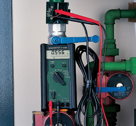 Dieser Vergleich liefert eine Zahl, die man dann auch Messwert nennt. Ein einfaches Beispiel hierfür ist das Thermometer. Zeigt es 20 °C an heißt das, dass die Einheit „Grad Celsius“ 20-mal in der gemessenen Größe enthalten ist. Der Messwert ist daher 20 °C. Weitere Beispiele für Messungen sind das Manometer an einer Wasser-Heizungsanlage oder die Füllstandanzeige an einem Öltank. Elektrische Messungen muss der Anlagenmechaniker am Wärmeerzeuger der Heizungsanlage ausführen. Denn dafür, dass hier die Flamme sicher brennt, sorgt heute Elektronik. Um möglichst viele der anfallenden Messungen mit einem Gerät durchführen zu können, verwendet man ein Vielfachmessgerät. Das Vielfachmessgerät vereinigt mehrere Messinstrumente in einem Gerät. Es können elektrische Spannung, Strom, Widerstand und – je nach Gerätetyp – weitere Messgrößen erfasst werden.