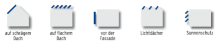 Montagemöglichkeiten PV-Module können für die Aufdachmontage, als Freiaufstellung oder für die Fassadenmontage eingesetzt und quer oder längs montiert werden. Sie sind für die solare Stromproduktion auf Einfamilienhäusern ebenso geeignet wie für den