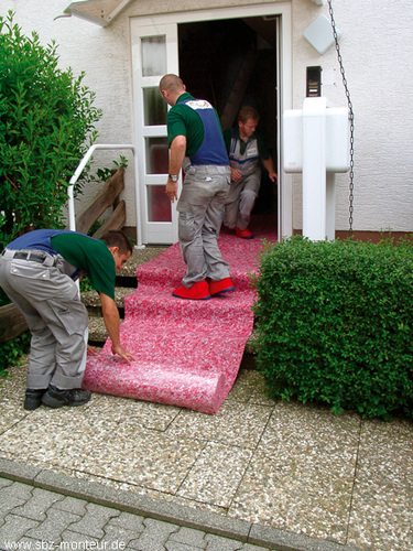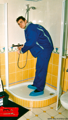 Geht es nicht um eine Kundendienstarbeit (also einen Handwerkereinsatz „light“), sondern um umfangreichere Arbeiten (z. B. eine Badsanierung), kann die Nummer mit den Überziehschuhen nicht funktionieren. Ständig muss man aus der „Baustelle Badezimmer“ raus zum Auto und umgekehrt. Das entschuldigt aber noch lange nicht dafür, dem Kunden eine Schmutzstraße zwischen Bad und Haustür zu „trampeln“.