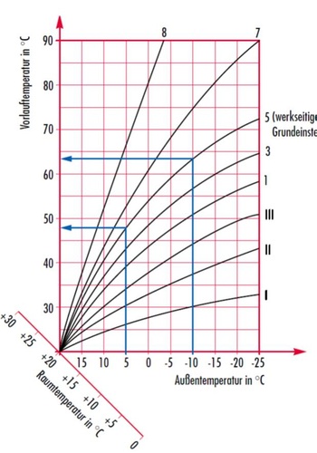 Grundsätzlich hängt die Auswahl der einzustellenden Heizkurve von den der Heizungsberechnung zugrundeliegenden Werten der Heizflächenbemessung und der maximalen Vorlauftemperatur