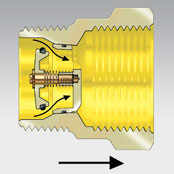 Gas-Strömungswächter lösen nicht über den sich einstellenden Druckabfall aus, sondern bedingt durch die hohe Fließgeschwindigkeit, die sich z. B. durch das Entfernen eines Stopfens aus der Gasleitung ergibt. Ihr Auslösen geschieht daher schneller als wie bei einer Gasmangelsicherung.