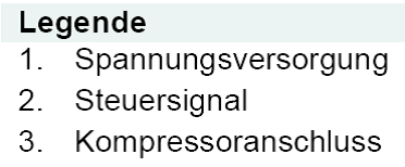 Die Drehzahlregelung für den Kompressor erfolgt mithilfe der Inverterelektronik. Dazu wird zunächst Wechselstrom in einem Umformer in Gleichstrom umgewandelt. Der Inverter wandelt seinerseits den Gleichstrom in ein 3 phasigen Drehstrom um. Abschließend passt der Kompressor durch Änderungen der Taktfrequenzen die Drehzahl dem tatsächlichen Leistungsbedarf an.
