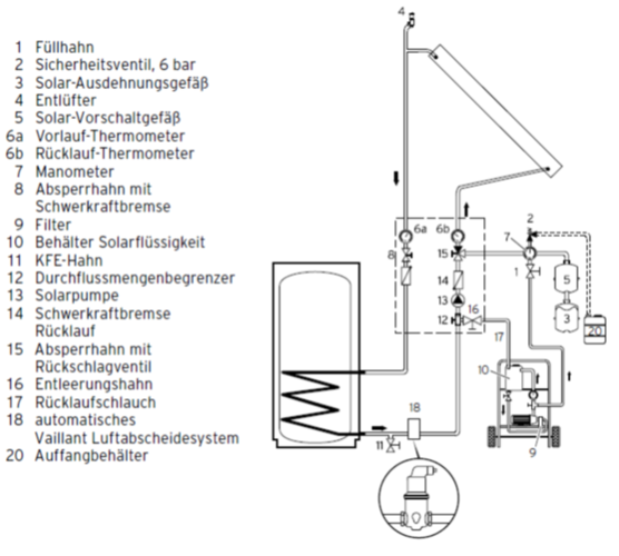 2. Kollektorkreis mit Solarflüssigkeit füllen