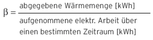 Die Arbeitszahl β (beta) gibt das Verhältnis der Heizenergie zur aufgebrachten elektrischen Energie über einen definierten Zeitraum wieder.