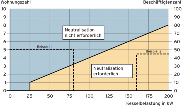 – bis 200 kW ist eine Kondenswassereinleitung in das öffentliche Abwassersystem ohne Neutralisation möglich.