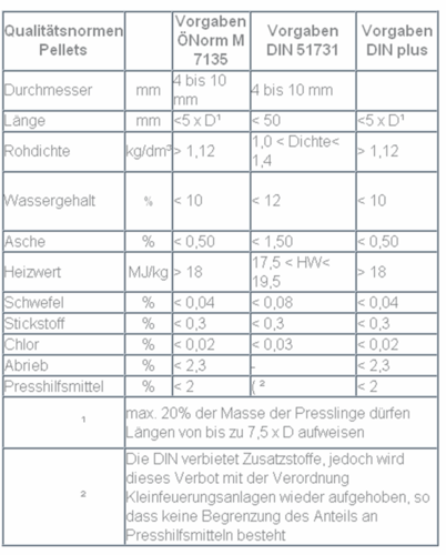 Qualitätsnormen Pellets Vorgaben ÖNorm M 7135 Vorgaben DIN 51731 Vorgaben DINplus.