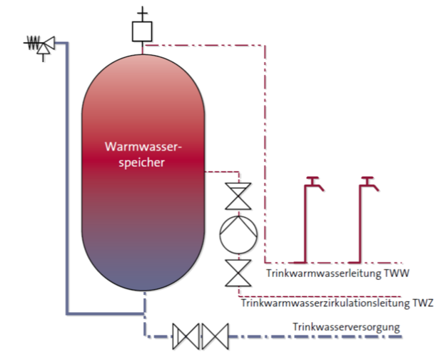 Eine Zirkulationsleitung mit zugehöriger Zirkulationspumpe erhöht den Bedienungskomfort, da an jeder Entnahmestelle sofort warmes Wasser zur Verfügung steht, auch wenn die Entnahmestellen z.B. in Küche und Bad weit vom Warmwasserspeicher entfernt liegen. Dadurch wird Wasserverschwendung infolge langer Vorlaufzeiten vermieden.