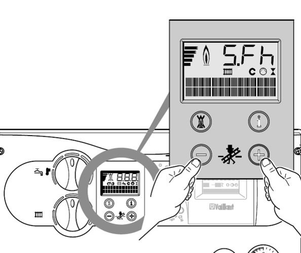 S.Fb = Schornsteinfegerbetrieb Warmwasser (WW-Entnahmearmatur öffnen)